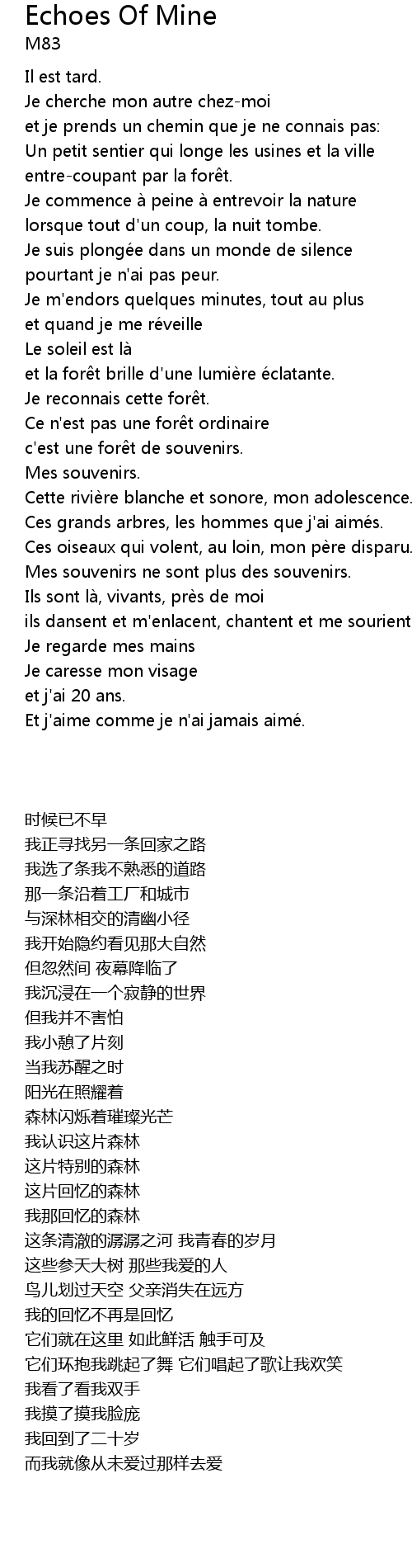 | [00:19.215] | Je suis plonge e dans un monde de silence |