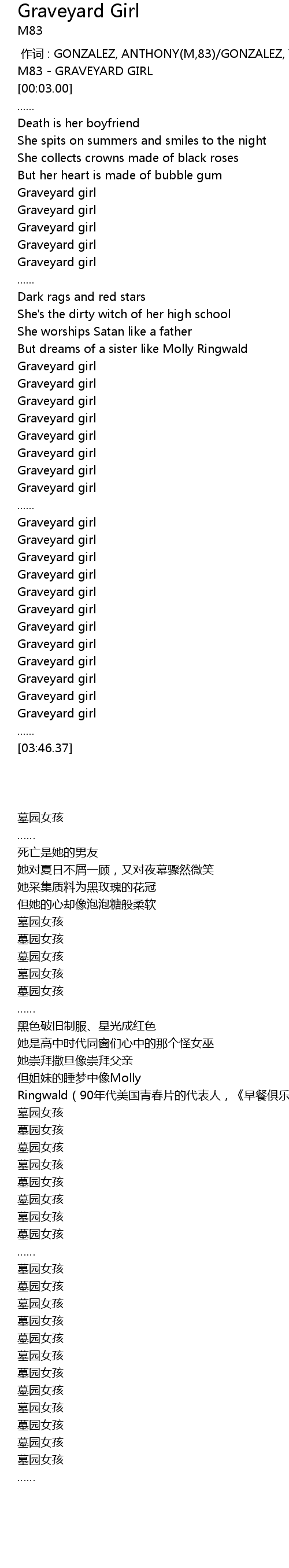 | [00:00.00] | M83 GRAVEYARD GIRL |