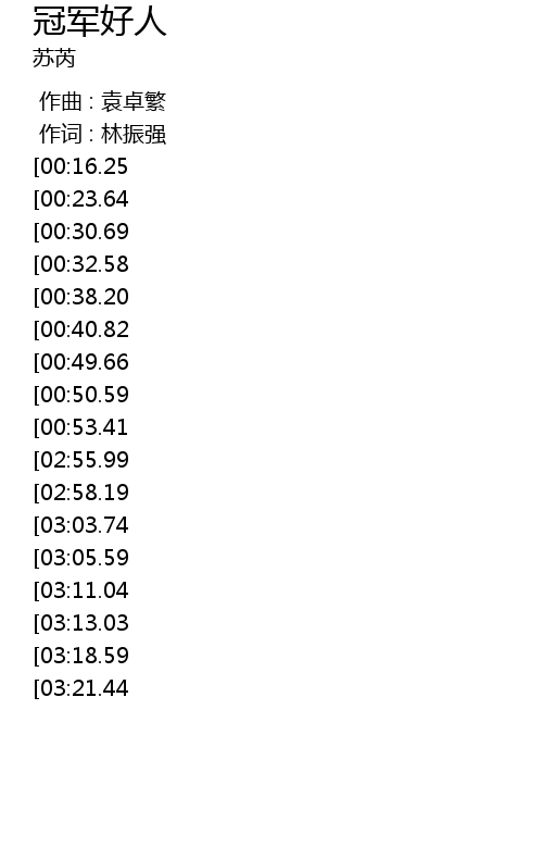 | [01:46.22][00:16.25] | 我是值得獎的冠軍好人 |