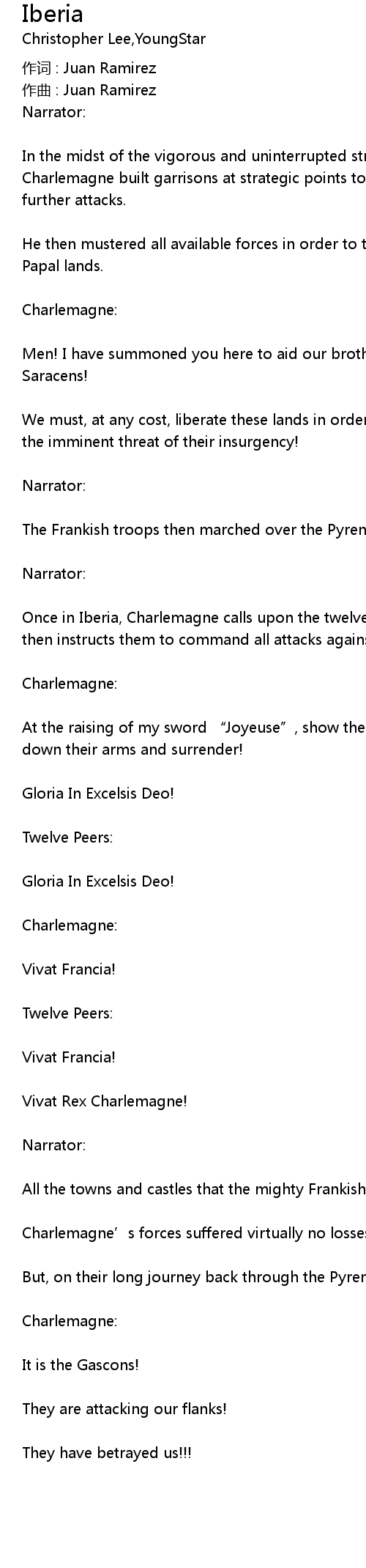 | At the raising of my sword " Joyeuse", show the enemy no mercy until they lay down their arms and surrender! | |
