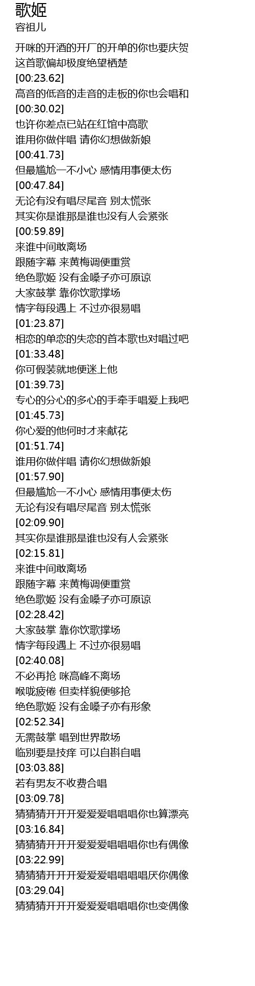 | [02:23.47] | 绝色歌姬 没有金嗓子亦可原谅 |