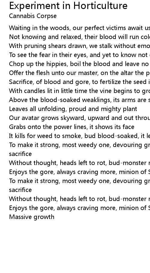 Offer the flesh unto our master, on the altar the plant demands a sacrifice |