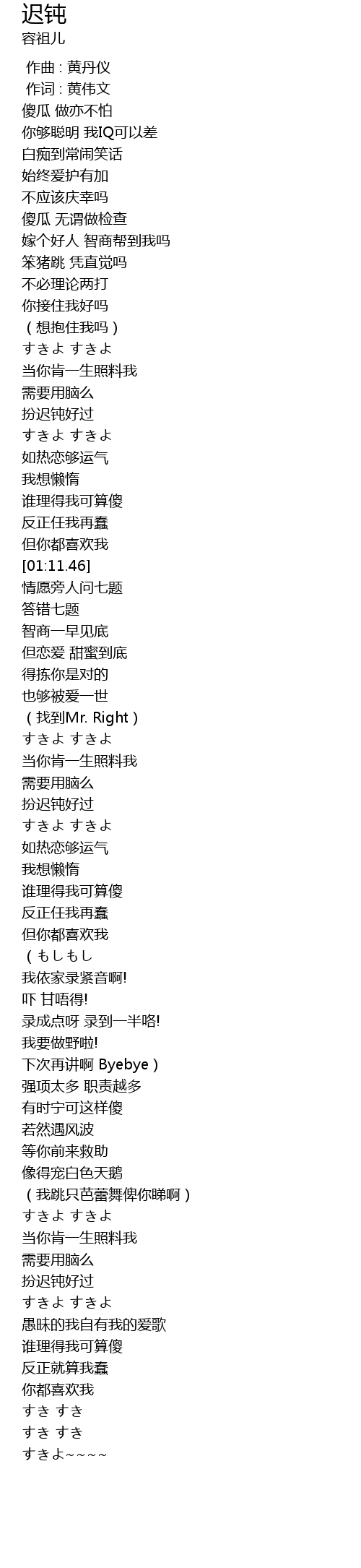| [01:45.87] | 扮迟钝好过 |