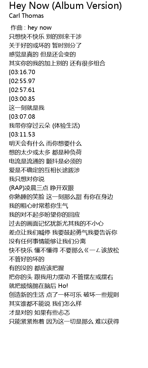| [03:22.11][03:00.85][02:39.44][01:19.50][00:36.79] | HEY NOW HEY NOW zhe yi ke jiu shi wo |