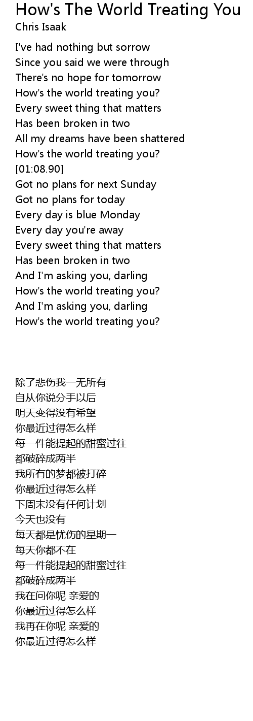 How's the world treating you? |