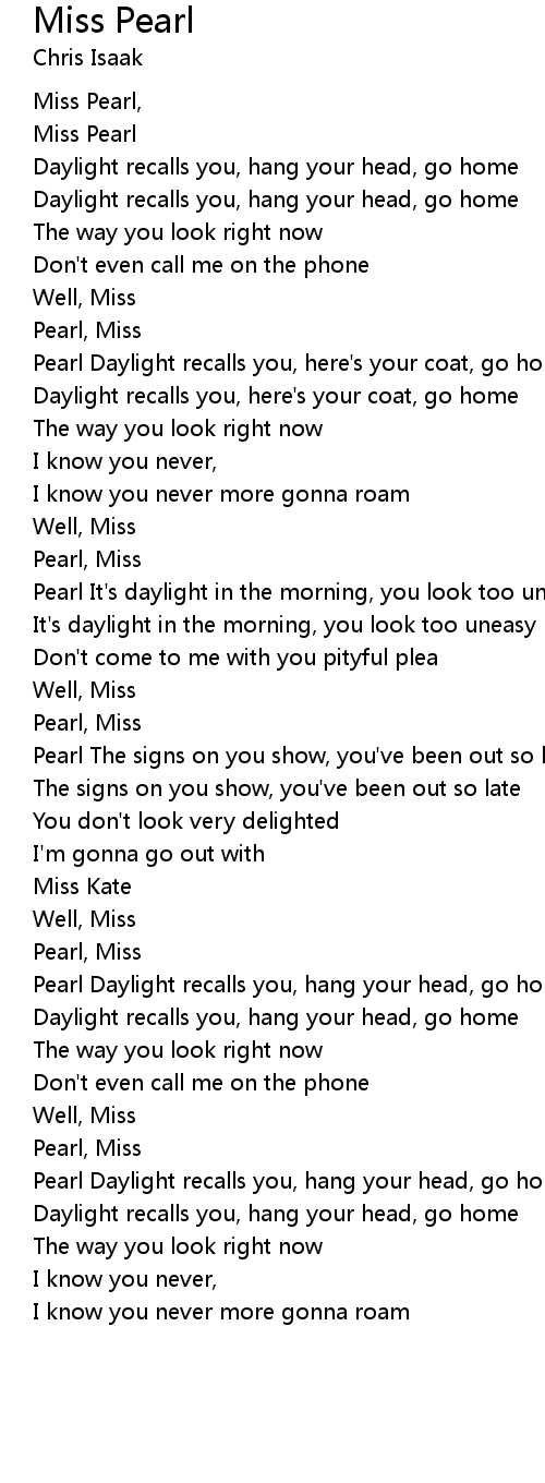 Pearl The signs on you show, you've been out so late |
