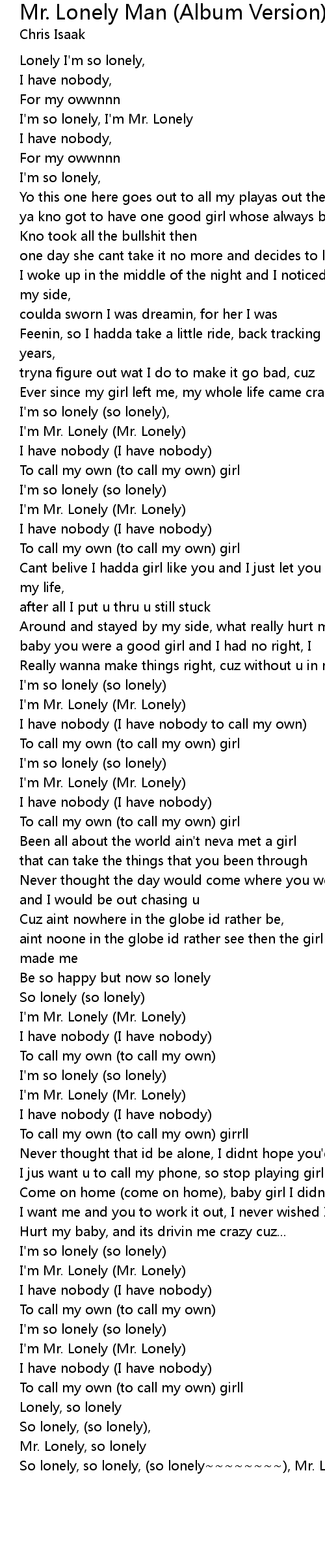 So lonely, so lonely, (so lonely~~~~~~~~), Mr. Lonely |