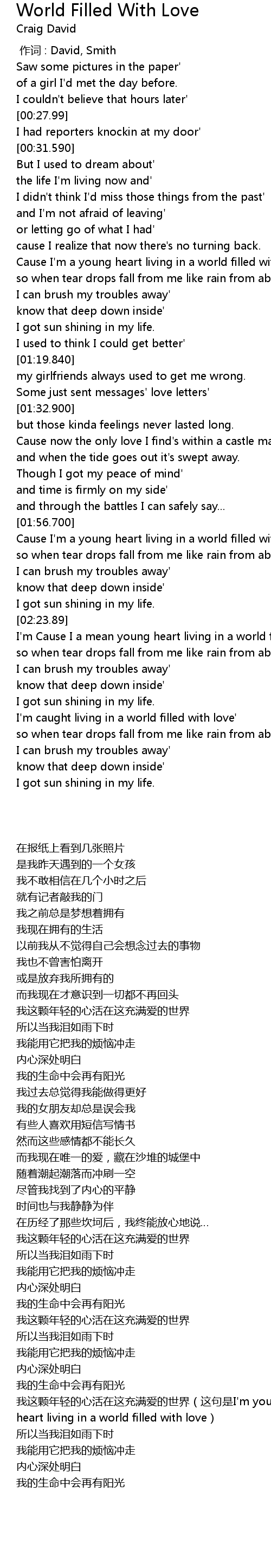 | [00:00.00] | 作词 : David, Smith |