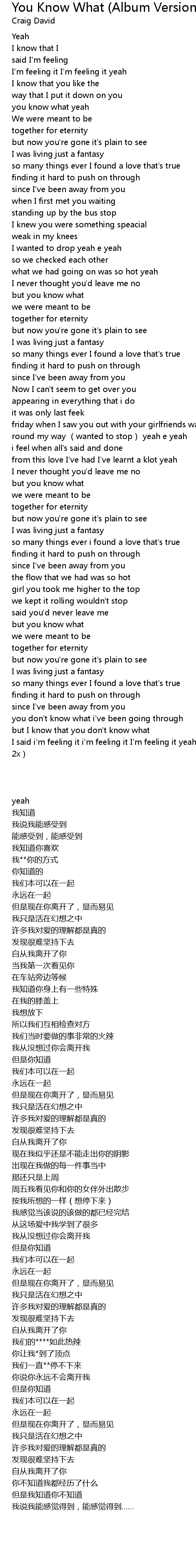 | Song | You Know What (Album Version) |