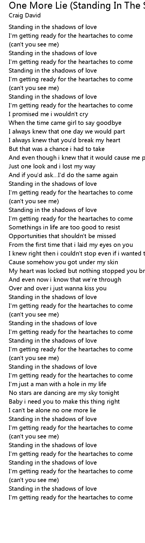 | Song | One More Lie (Standing In The Shadows) - Haji & Emmanuel Mix |