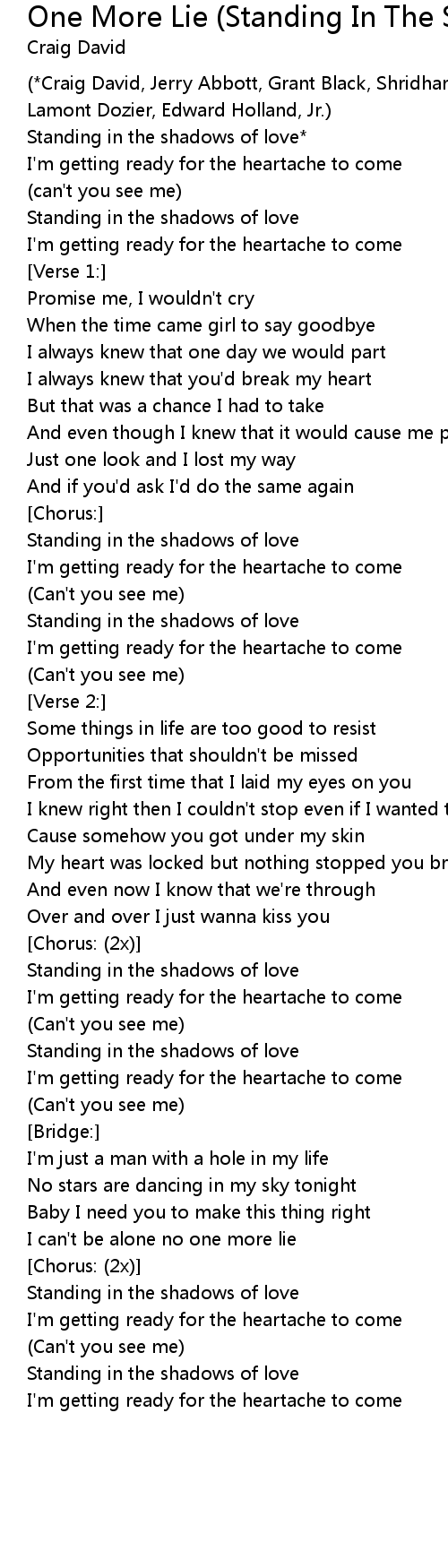 (*Craig David, Jerry Abbott, Grant Black, Shridhar Solankhi, Brian Holland, Lamont Dozier, Edward Holland, Jr.) |