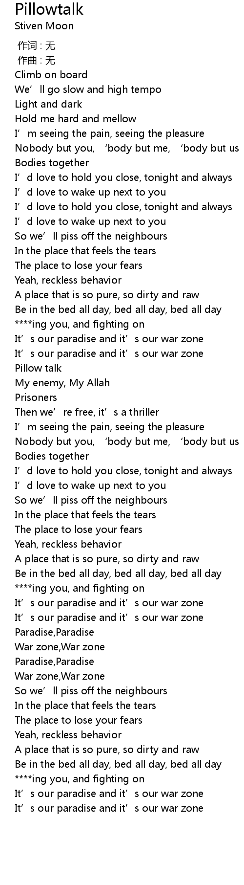 | [02:10.822] | Be in the bed all day, bed all day, bed all day |