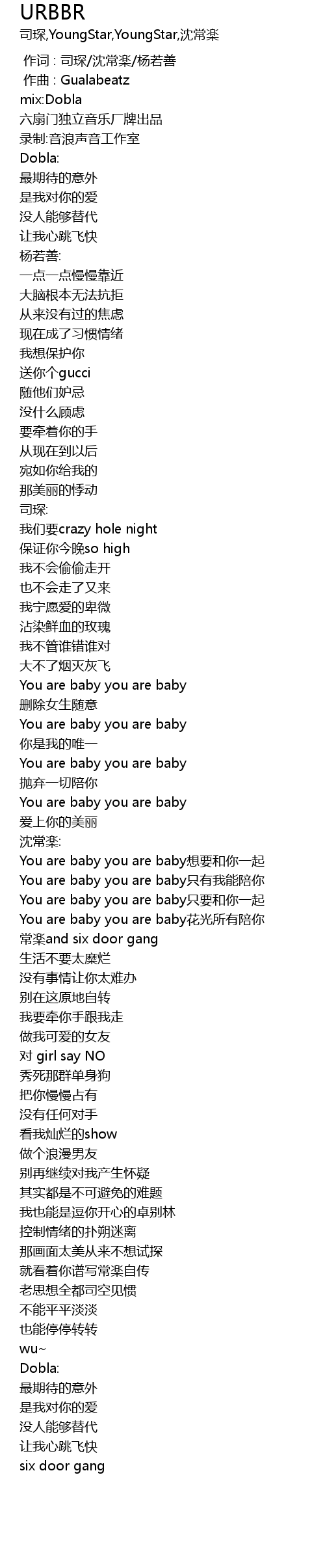 | [01:51.67] | You are baby you are baby xiǎng yào hé nǐ yì qǐ |