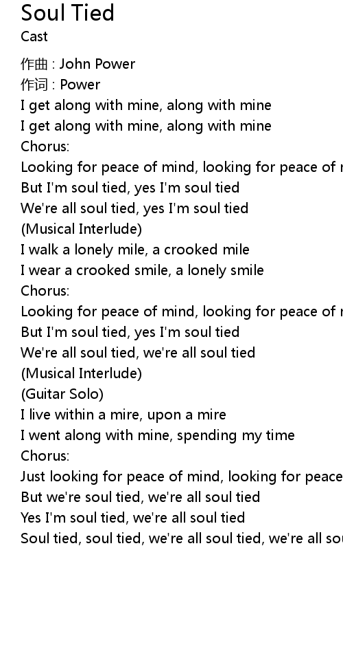 | Soul tied, soul tied, we're all soul tied, we're all soul tied |