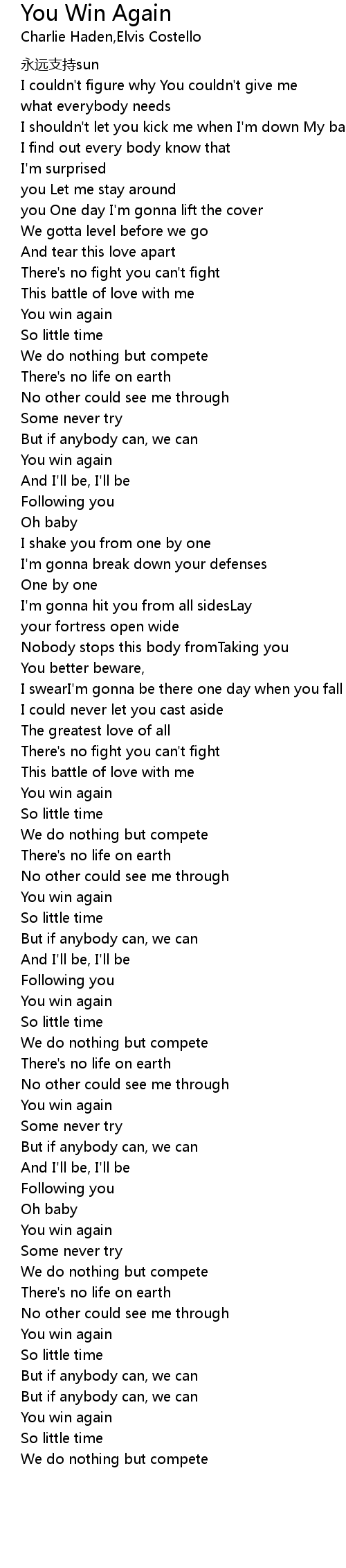 | Song | You Win Again |
