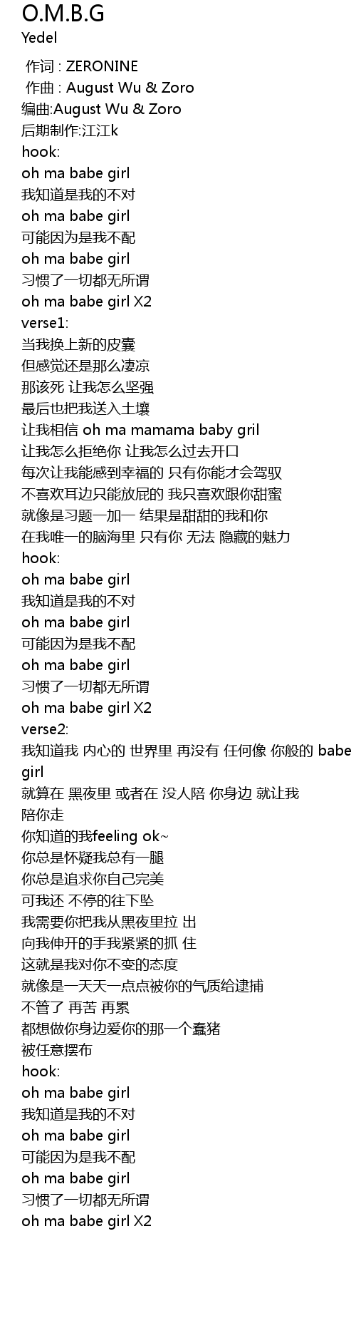 | [00:02.138] | 编曲:August Wu & Zoro |