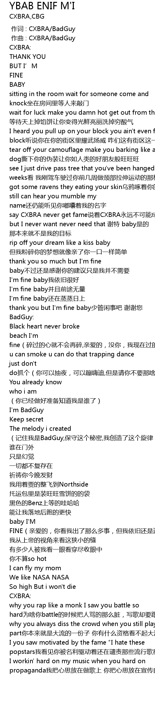 | [00:00.000] | 作词 : CXBRA/BadGuy |