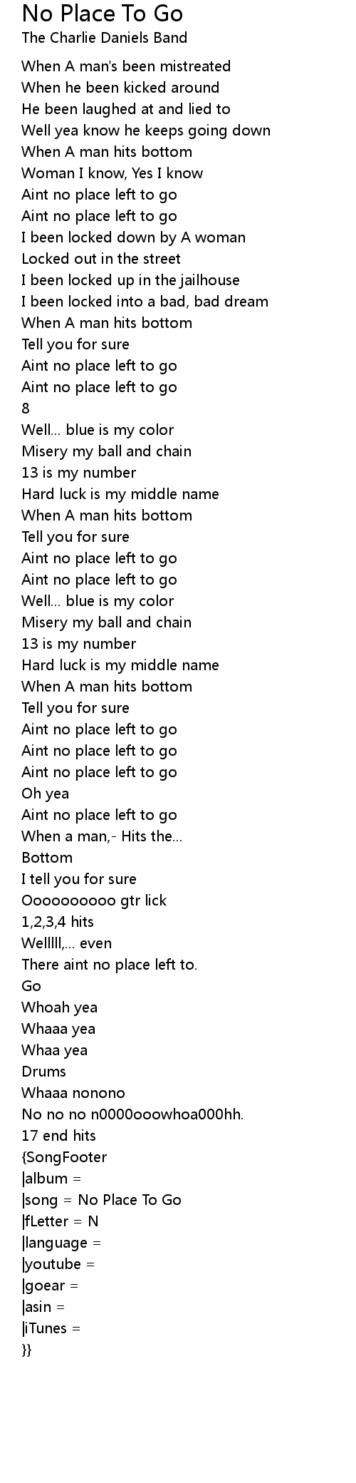 |song = No Place To Go |