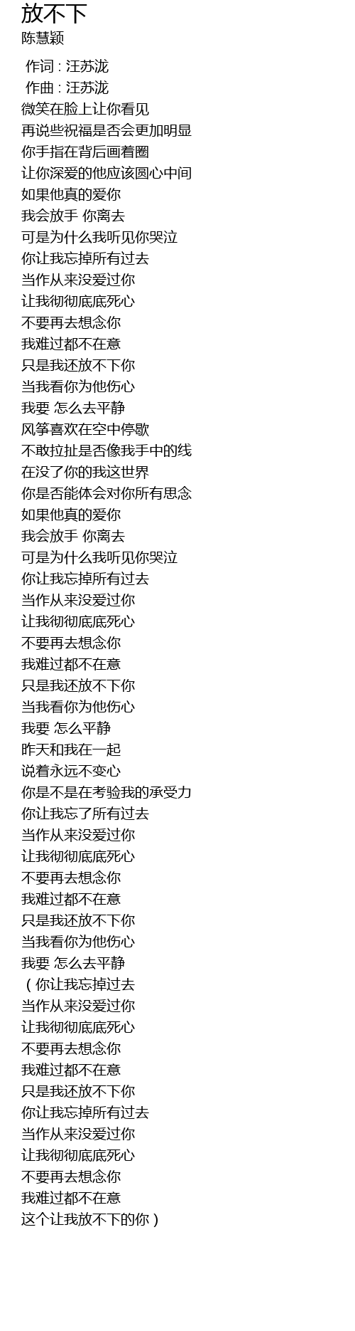 | [02:45.607] | zhǐ shì wǒ hái fàng bù xià nǐ |