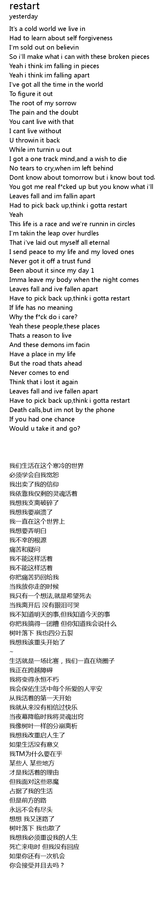 | [01:17.01] | Leaves fall and im fallin apart |
