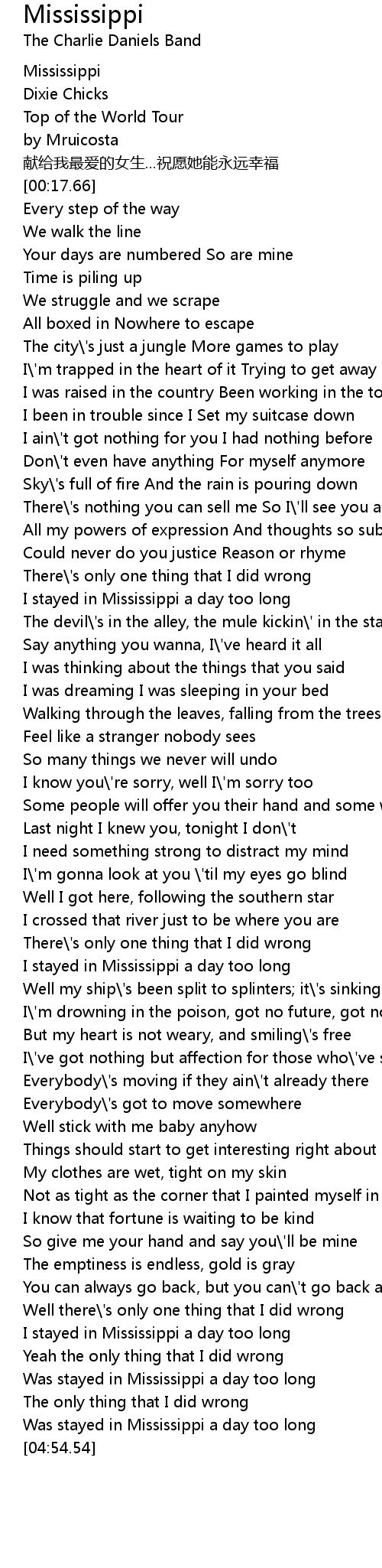 | [01:22.34] | I stayed in Mississippi a day too long |
