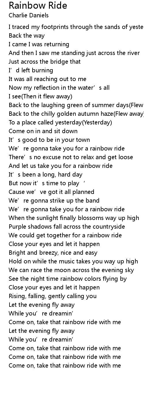| Come on, take that rainbow ride with me | |