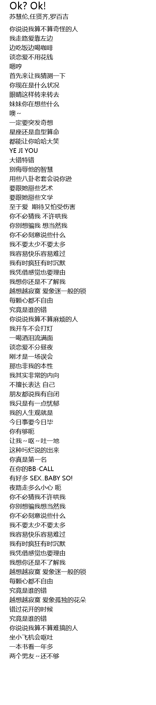 | [00:15.710] | ni shuo shuo wo suan bu suan qi guai de ren |