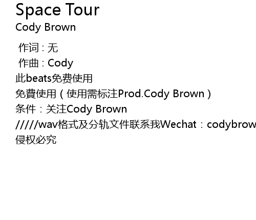 | [00:01.276] | 免費使用(使用需标注Prod.Cody Brown) |
