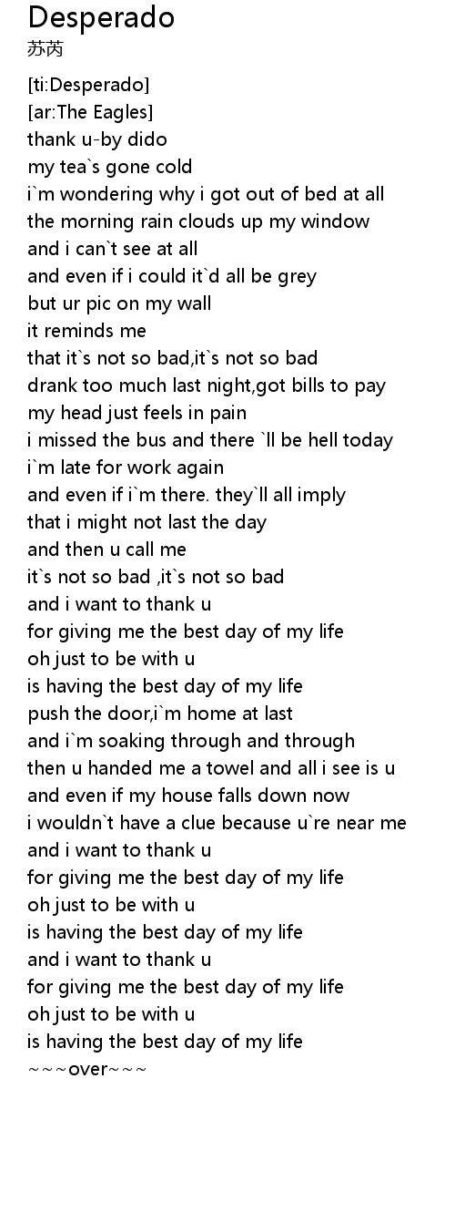 | [00:37.770] | i`m wondering why i got out of bed at all |