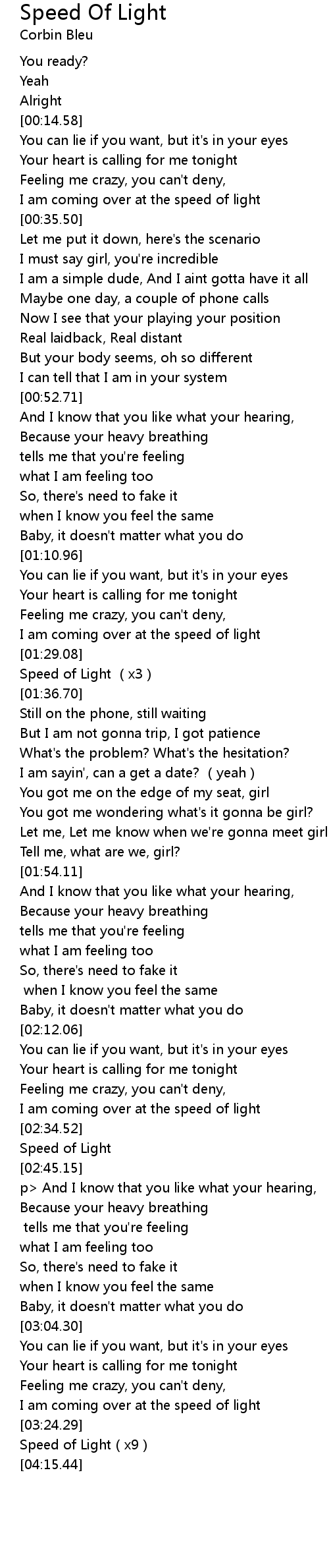 | [01:30.75] | Speed of Light (x3) |