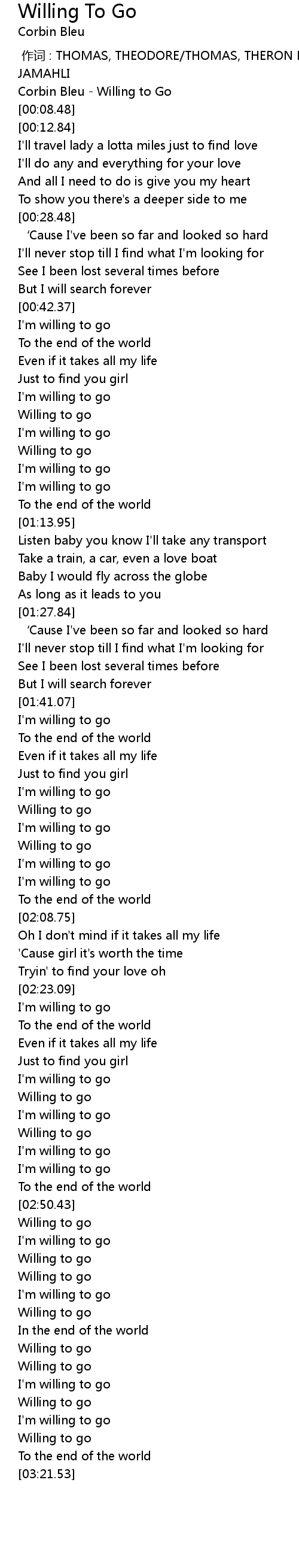 | [00:01.12] | Corbin Bleu - Willing to Go |