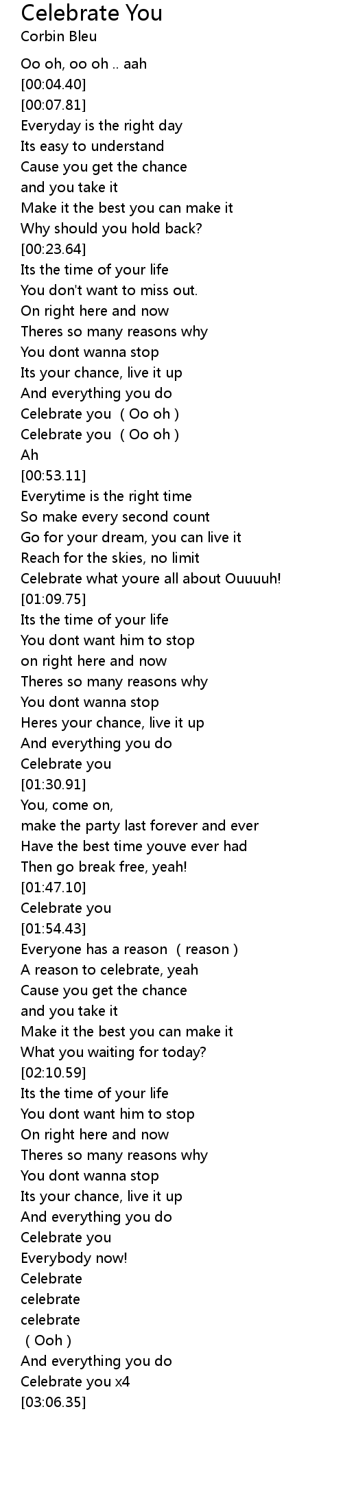 | [00:48.62] | Celebrate you (Oo oh) |