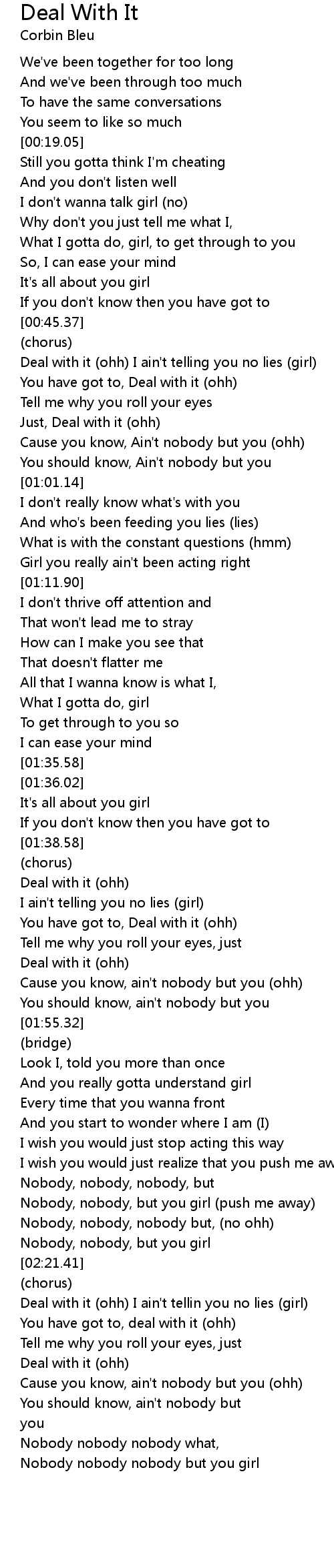 Deal with it (ohh) I ain't telling you no lies (girl) |