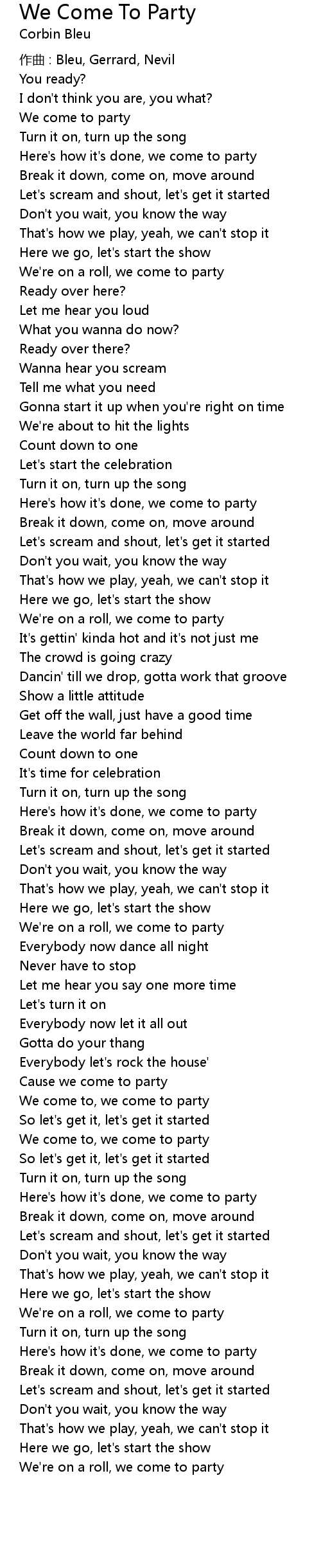 | We come to, we come to party | |