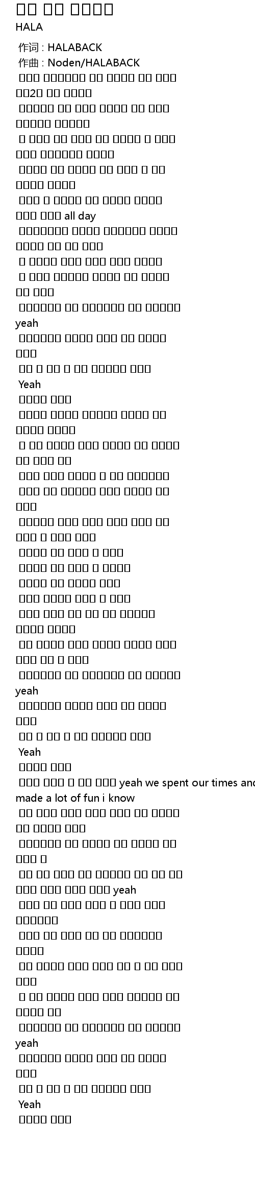 作词 : HALABACK |