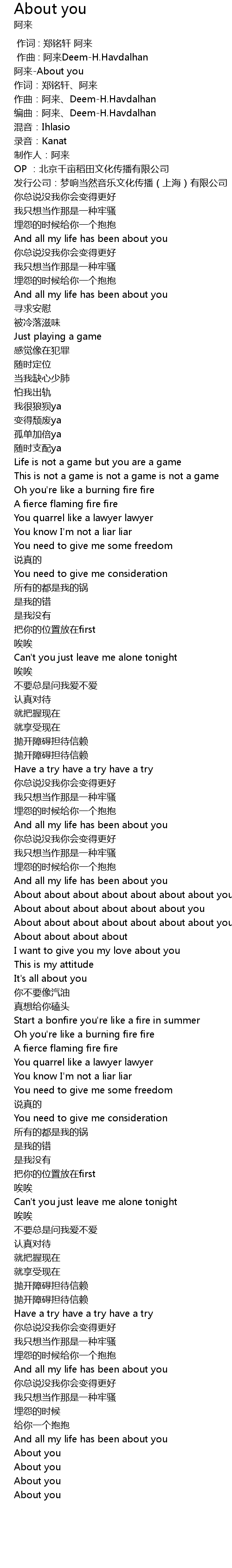| [00:00.166] | 阿来-About you |