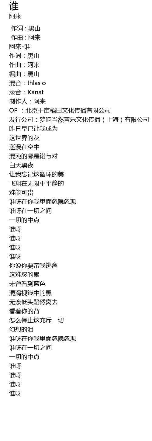 | [00:00.268] | a lái shuí |