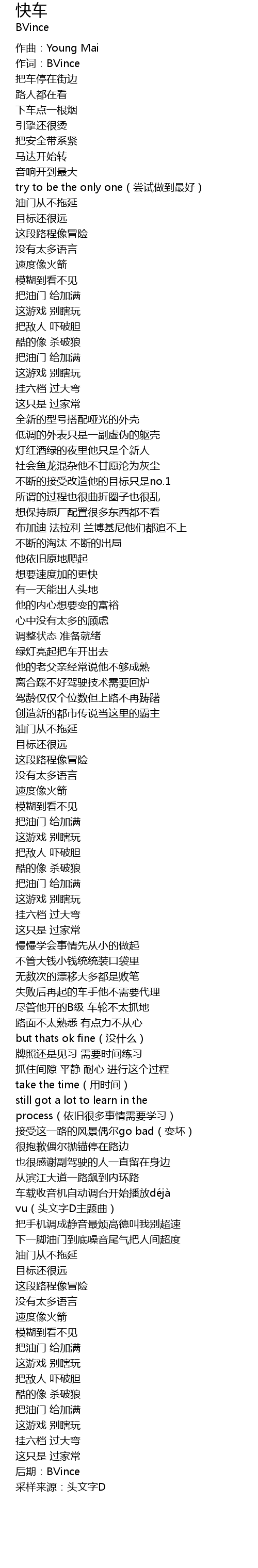 | [02:59.666] | 油门从不拖延 |
