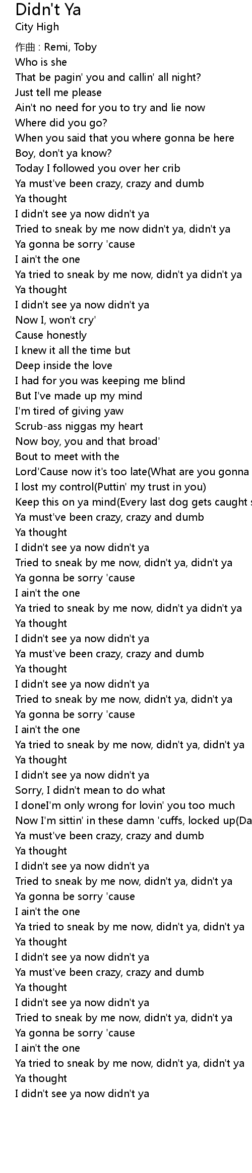 | Tried to sneak by me now didn' t ya, didn' t ya | |