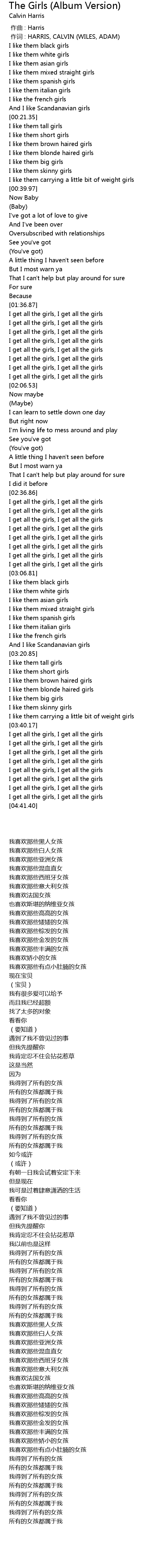 | [00:01.00] | zuò cí : HARRIS, CALVIN WILES, ADAM |