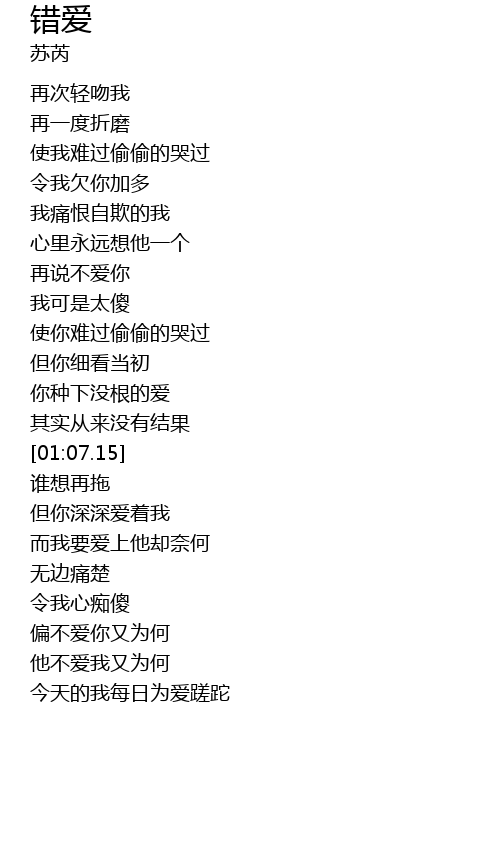 | [01:16.80] | 而我要爱上他却奈何 |