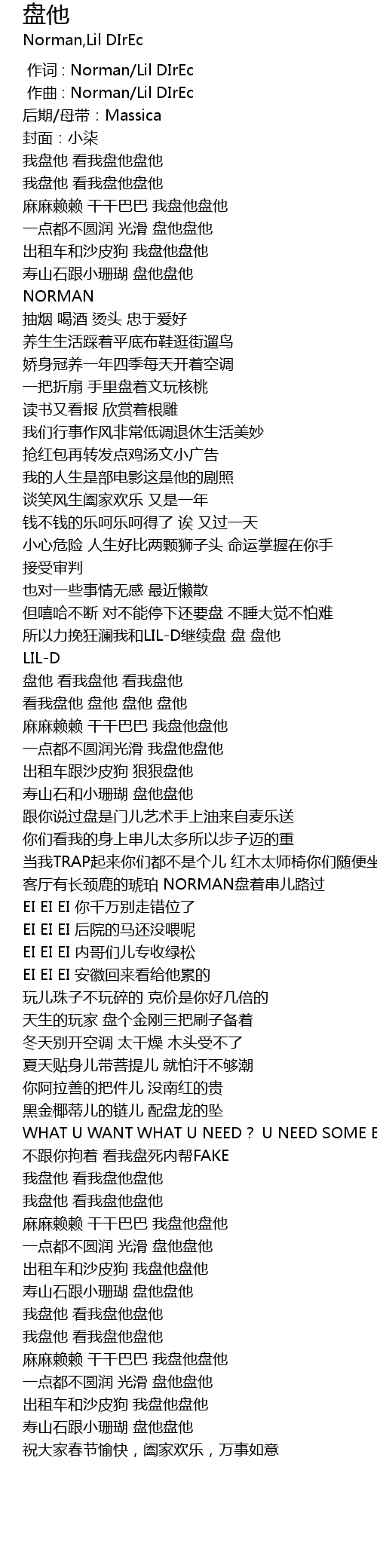 | [01:22.00] | 看我盘他 盘他 盘他 盘他 |