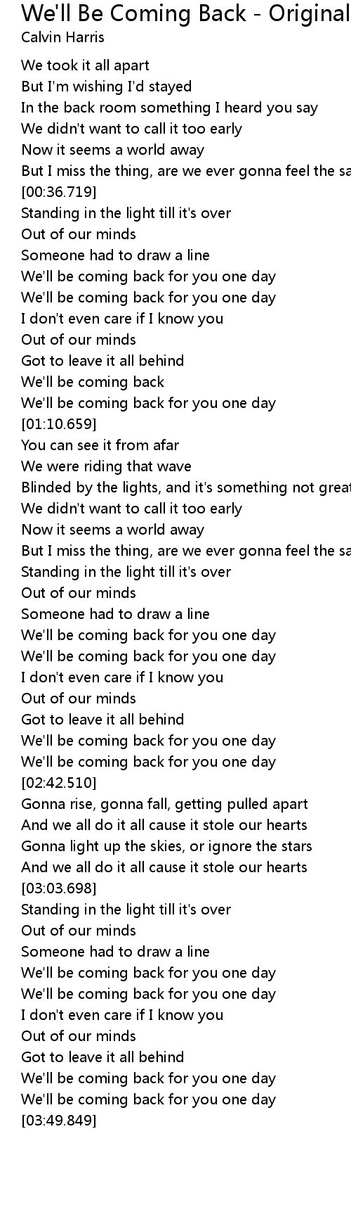 | [01:01.690] | We' ll be coming back |