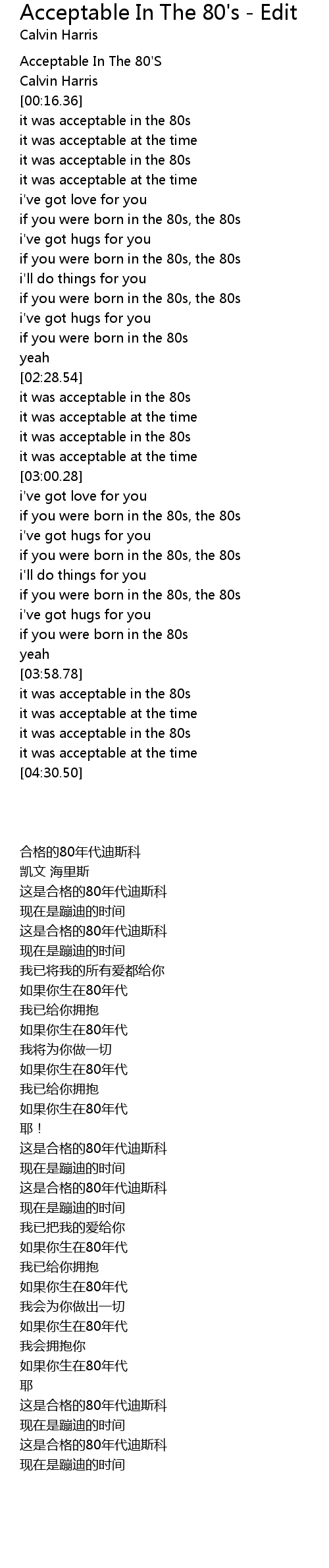 Acceptable In The 80's - Edit Lyrics