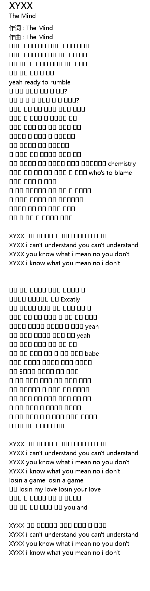 XYXX i can't understand you can't understand |