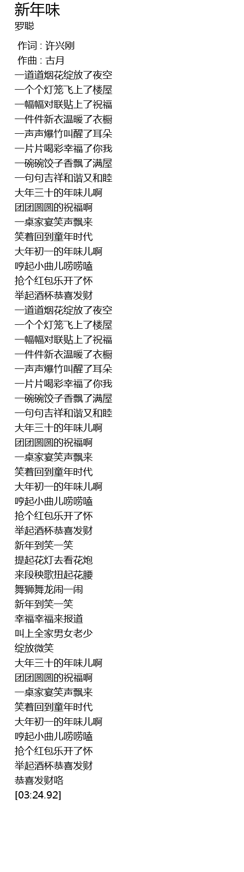 | [02:00.77] | 一句句吉祥和谐又和睦 |