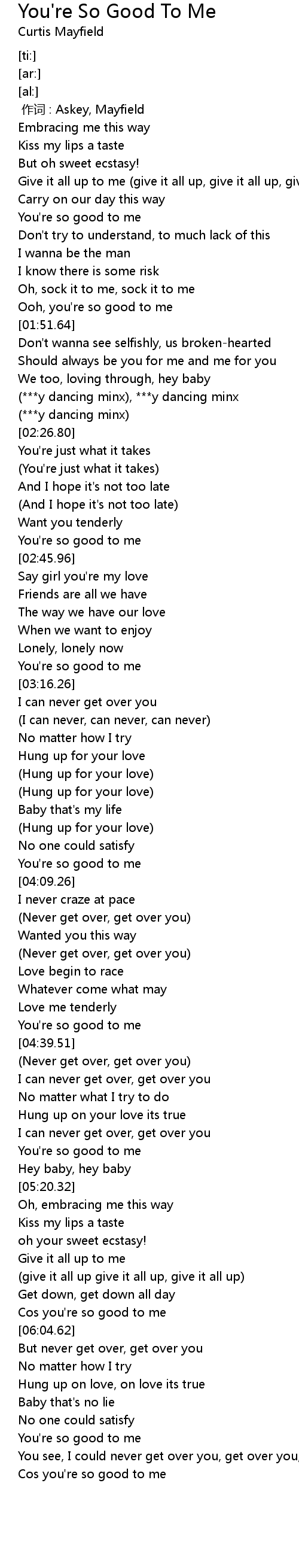 | [06:01.44] | Cos you're so good to me |