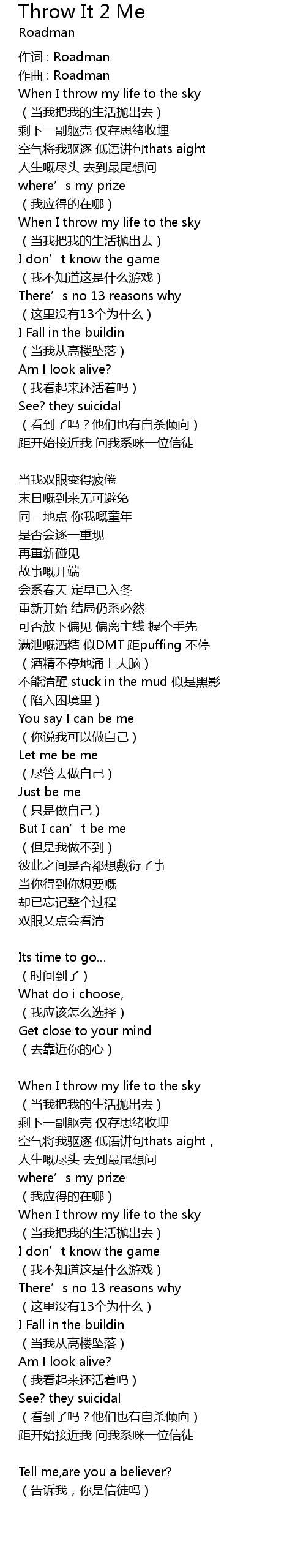 | 作词 : Roadman | |