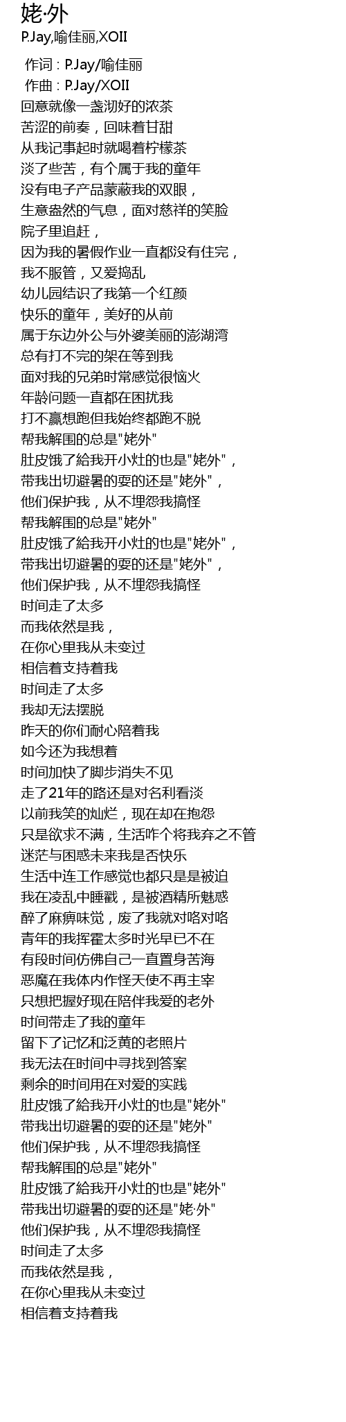 | [00:00.000] | 作词 : P.Jay/喻佳丽 |