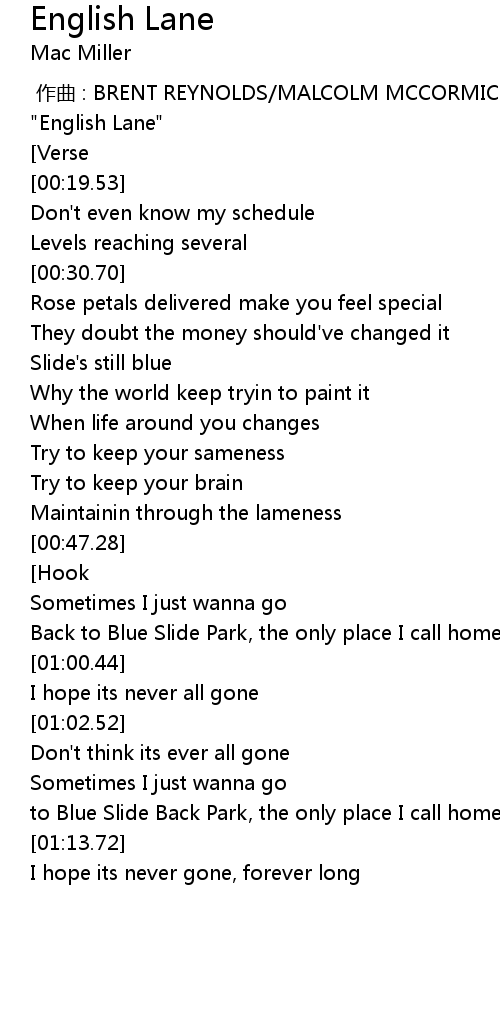 | [00:15.98] | "English Lane" |